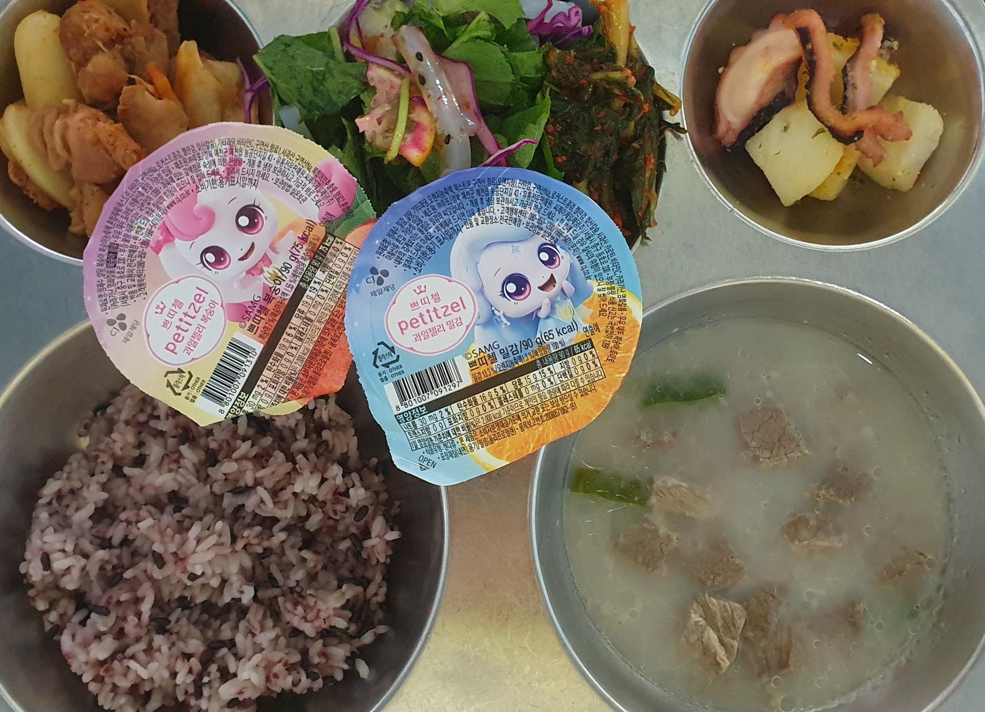 흑미밥, 설렁탕5.6.13.16, 치즈떡갈비2.5.6.13, 버터문어감자조림2.5.13, 청포묵샐러드5.6, 열무김치9,