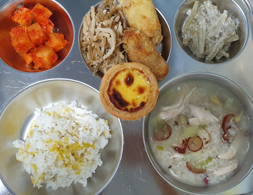 기장밥, 영양닭죽15, 임연수어구이2.5.6.12.13.16.18, 우엉채진미채볶음5.6.13.17, 머위대들깨볶음5.6, 깍두기,