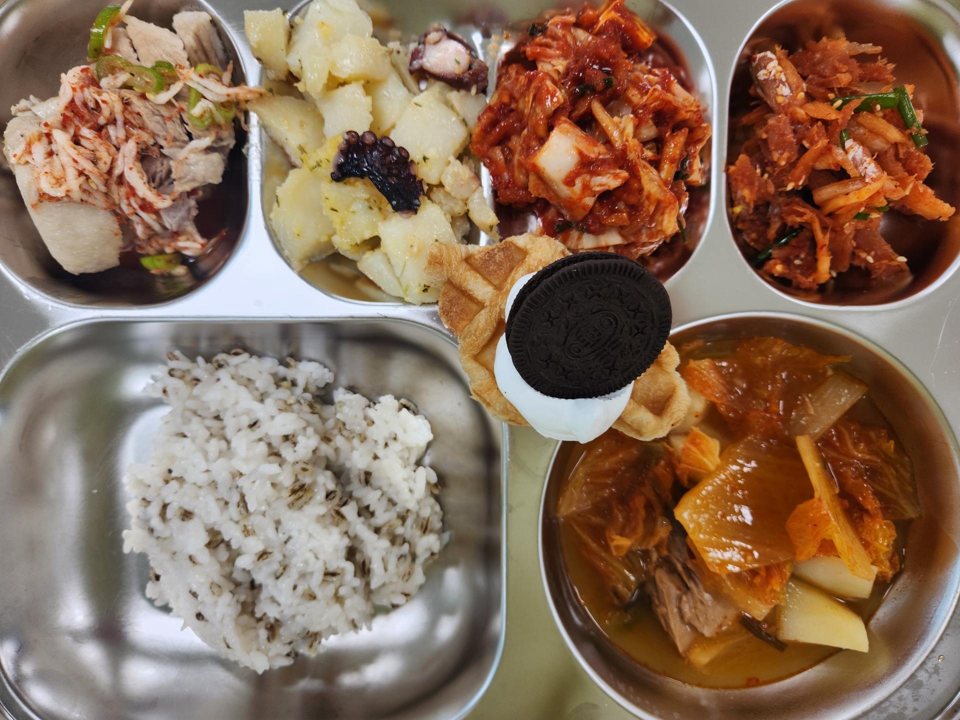 검정보리밥, 참치감자김치찌개5.6.9, 보쌈/새우젓9.10, 문어감자조림5.6, 더덕황태무침5.6, 보쌈김치9, 오레오크로플1.2.6